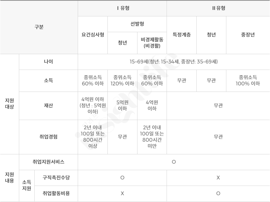 ✔ 국민기초생활보장법 생계급여 수급자(단, II유형에는 참여할 수 있음)