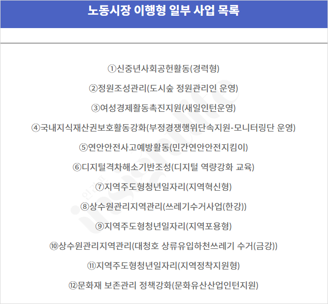 ✔ 정부 재정지원 직접일자리에 참여하고 있거나 참여 종료 후 6개월이 지나지 않은 사람. 단 일부사업(아래 이미지 참고)의 경우 참여 종료 후 즉시 참여 가능